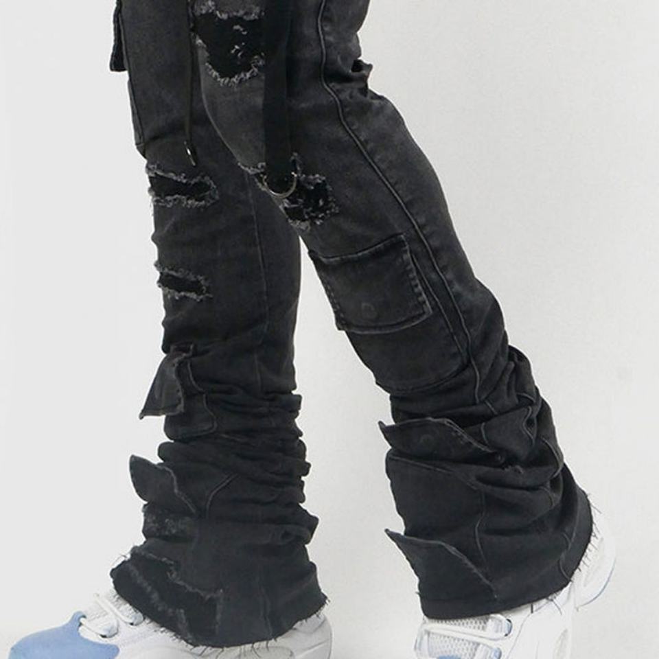 Stacked Skinny Jeans Men's Jeans Cargo Pocket Men's Premium Stretch Distressed Washed Jeans for Men