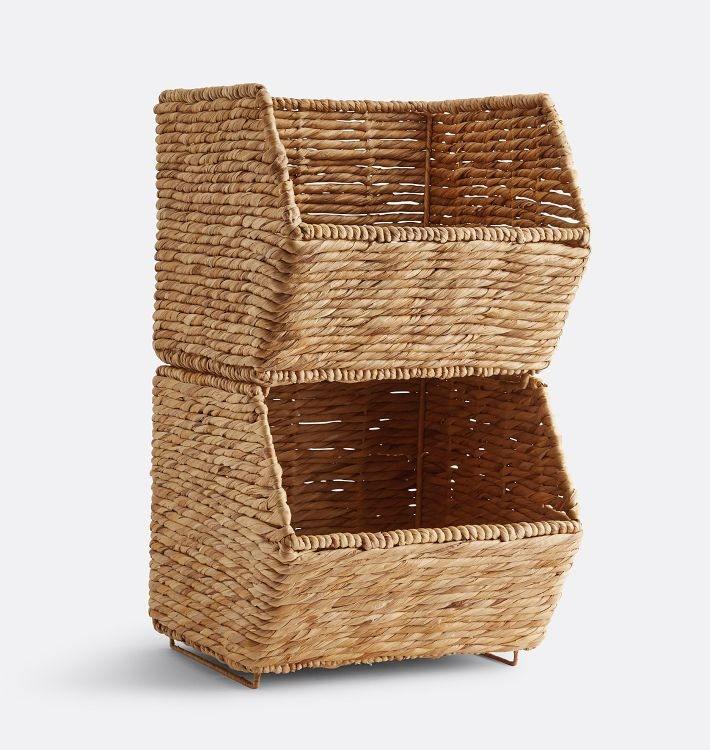 Stacked water hyacinth baskets:Size: W14,5 x H12,5 inch