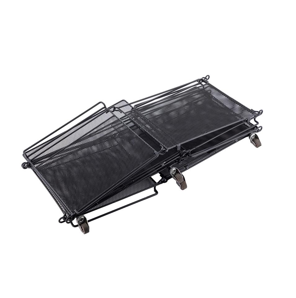 Stacking Storage Mesh Basket Double Decker Foldable Basket with Roller Knockdown Movable Trolley Basket Laundry Utensil Holder