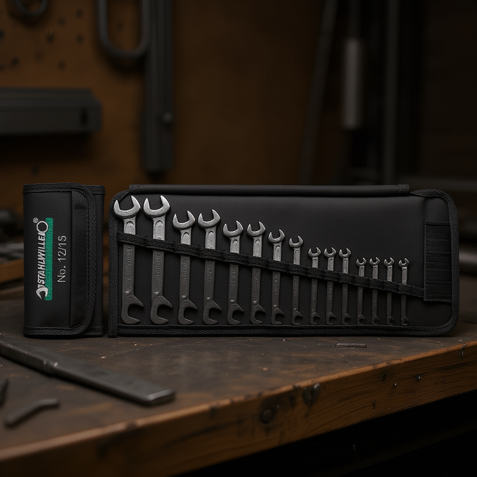 Stahlwille Small Double-Ended Wrench Set with Roll-Up Tool Bag