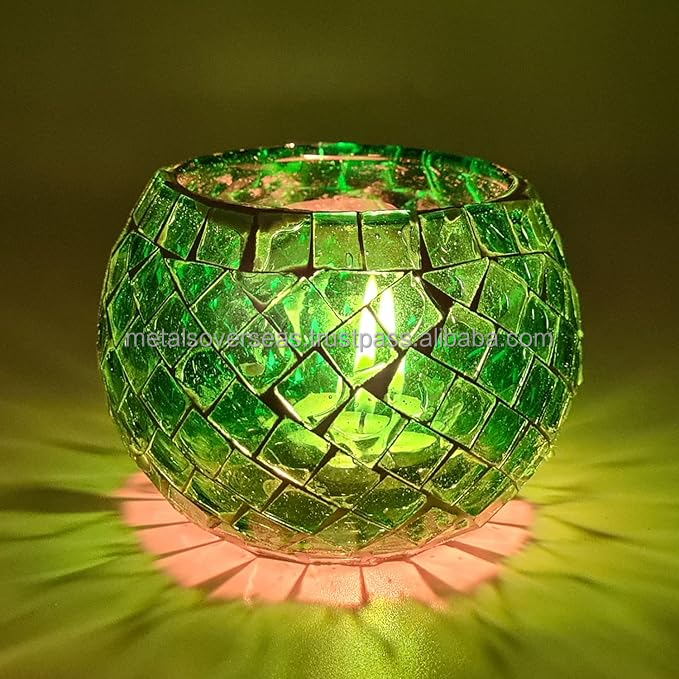Stained Glass Mosaic Tealight Holder for Living Room Decor Handcrafted Mosaic Candle Holder for Festival Decoration