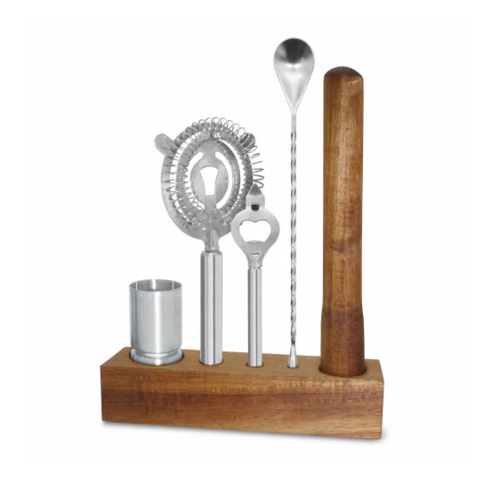 Stainess Steel Bar Tools Set Wood Stand Bar Tools Accessories Bartender Kit Drinkware Bar Accessories Bartender Kit
