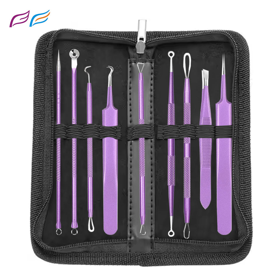 Stainless Steel 10 Pcs Blackheads Remover Needle Tool Pimple Popper Acne Comedone Extractor with Packaging
