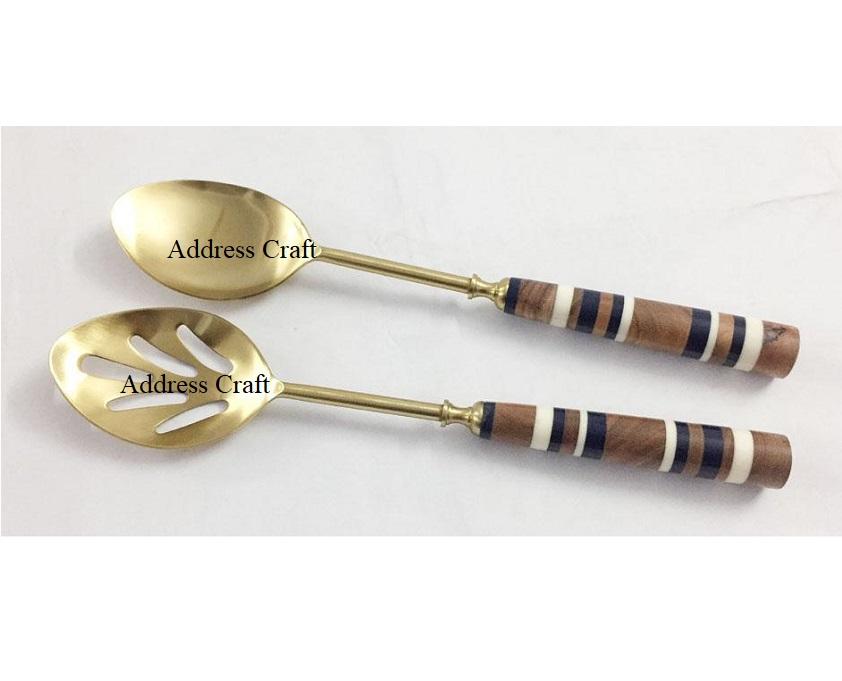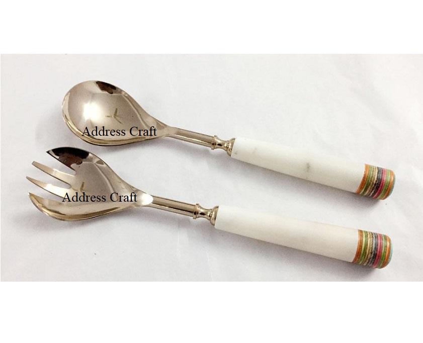 Stainless Steel 18/8 PVD Gold Salad Server With Resin Handle Latest Fork and Spoon Salad Tool Set SS Cutlery Set Kitchen Tools