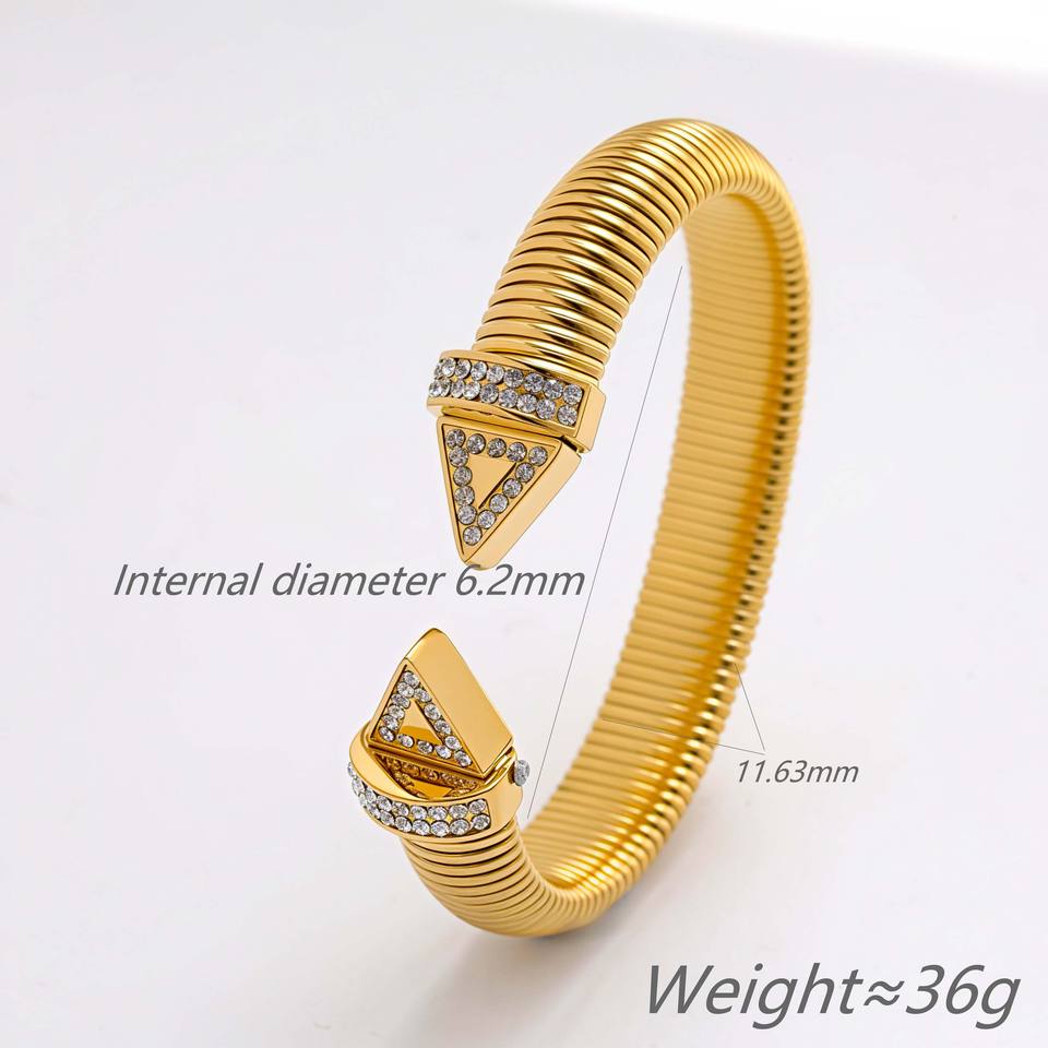 Stainless Steel 18K Gold Plated Zircon Open Bangle-Vintage Retro Luxury Snake Bone Texture Bracelet for Women's Parties