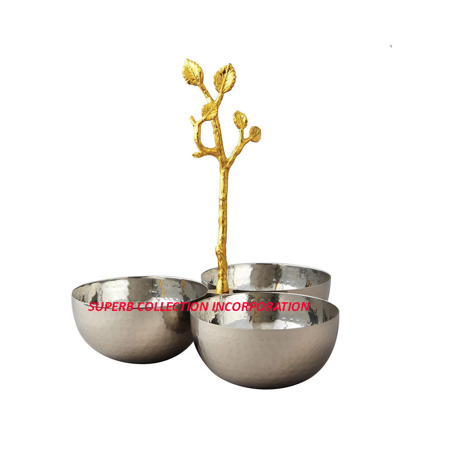 Stainless Steel 3 Compartment Bowls With Gold Leaf Handle Hot Selling and High Quality Direct OEM Factory Sale