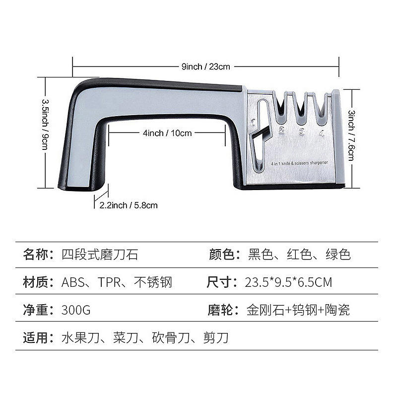 Stainless Steel 4 In 1 Knife Sharpener Manual Multi Grit Scissors Sharpening Tool For Household Use With Angled Whetstone