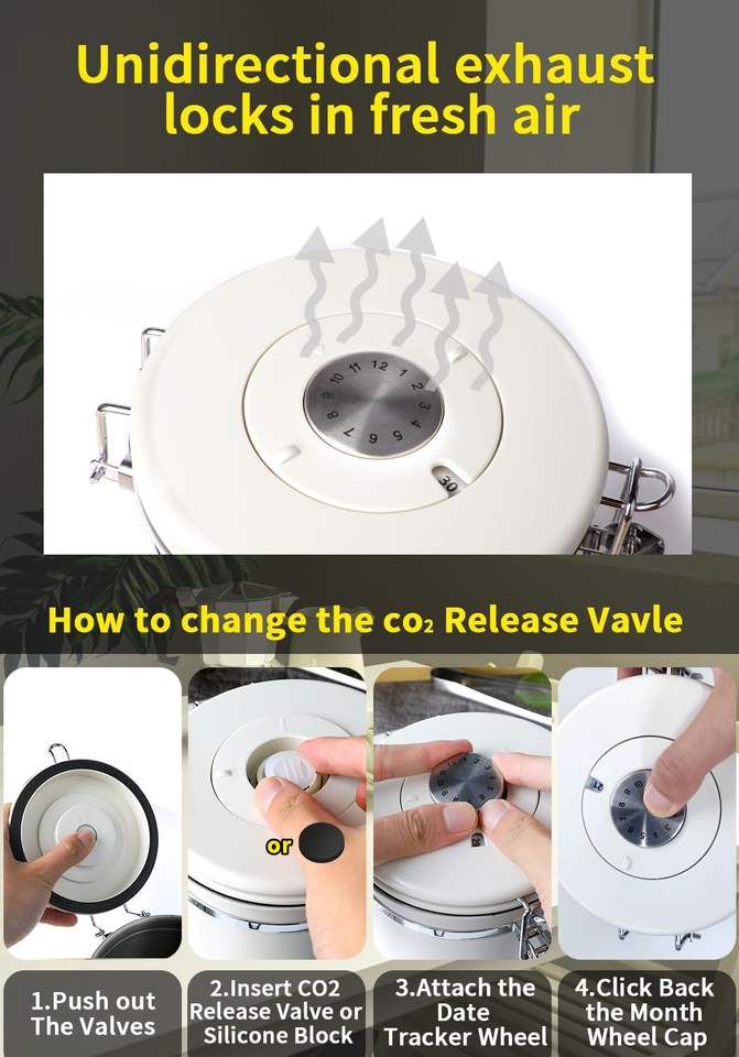 Product name:Coffee Bean Tea Canister with CO2 Valve & Spoon