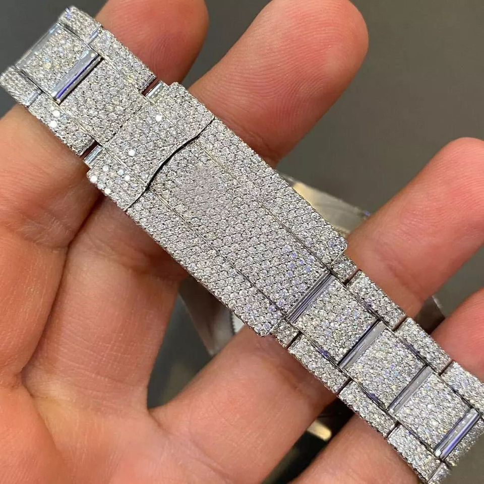 Stainless Steel Analog Display Moissanite Diamond VVS Clarity Iced Out Business Crystal Dial Watch with MIYOTA Movement Unisex