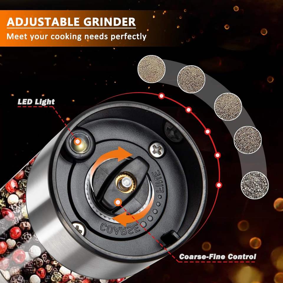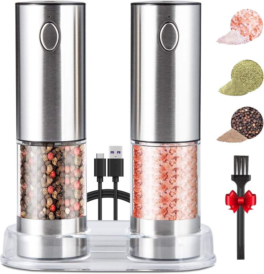 Stainless Steel Automatic Salt ,Electric Pepper Shakers Set Rechargeable Salt and Pepper Grinder with Adjustable Coarseness
