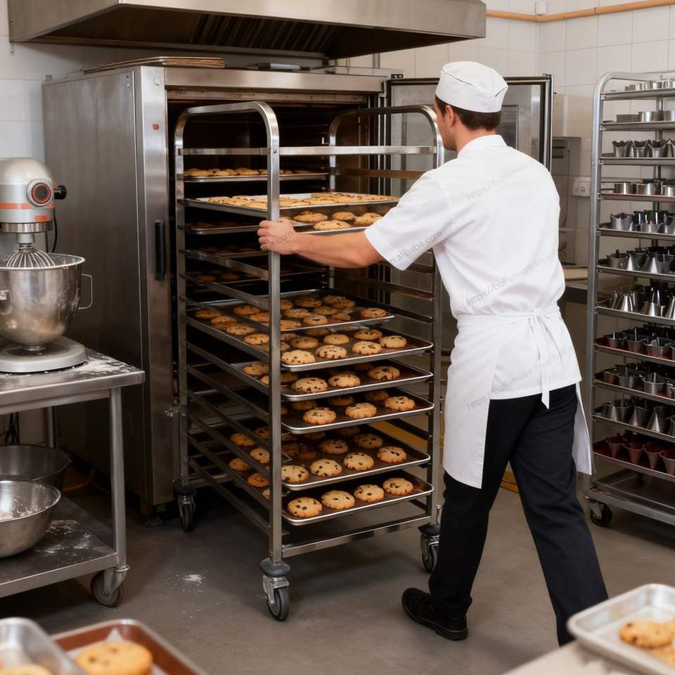 Stainless Steel Bakery Rack Trolley for Cookie Baking and Cooling in Industrial Kitchen