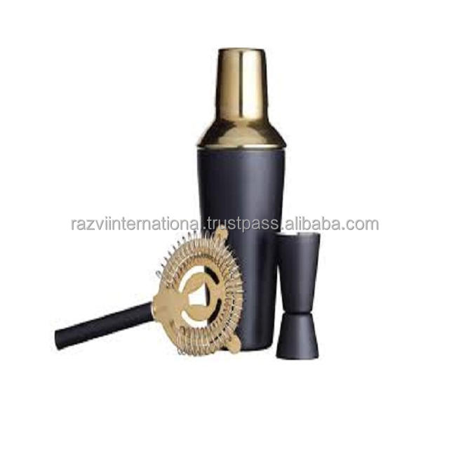 Stainless Steel Bar Set in Black Glossy Powder Coating Modern Design Wine and Cocktail Accessories