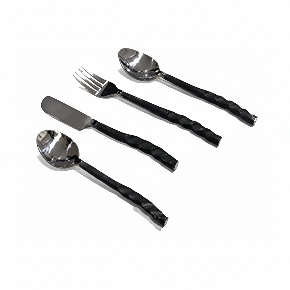 Stainless Steel Beaten Black Handle Cutlery Set