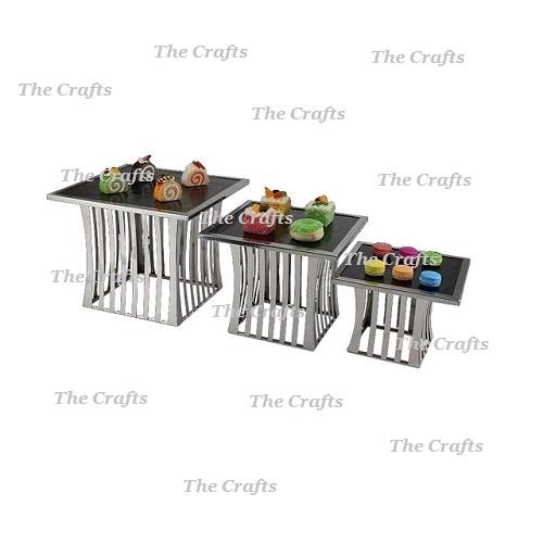 Stainless Steel Black Eco-Friendly Riser with Glass Top Set of Three Dessert Fruits Cake Display Stand