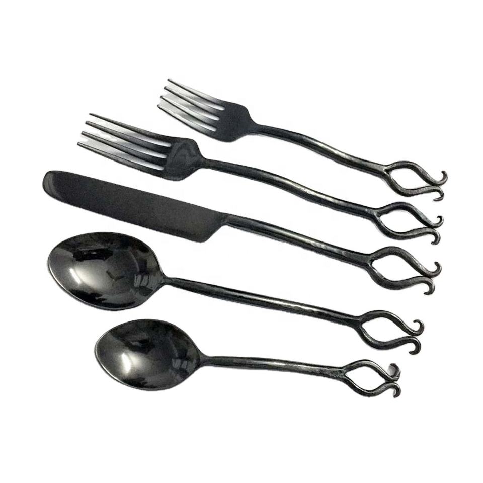 Stainless Steel Black Rustic Handle Stainless Steel Cutlery Set with Black Unique Handmade Handle Design for Home