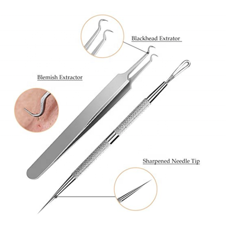Stainless Steel Blackhead Remover Kit Acne Extractor Tool With Case For Facial Care Five Piece Set