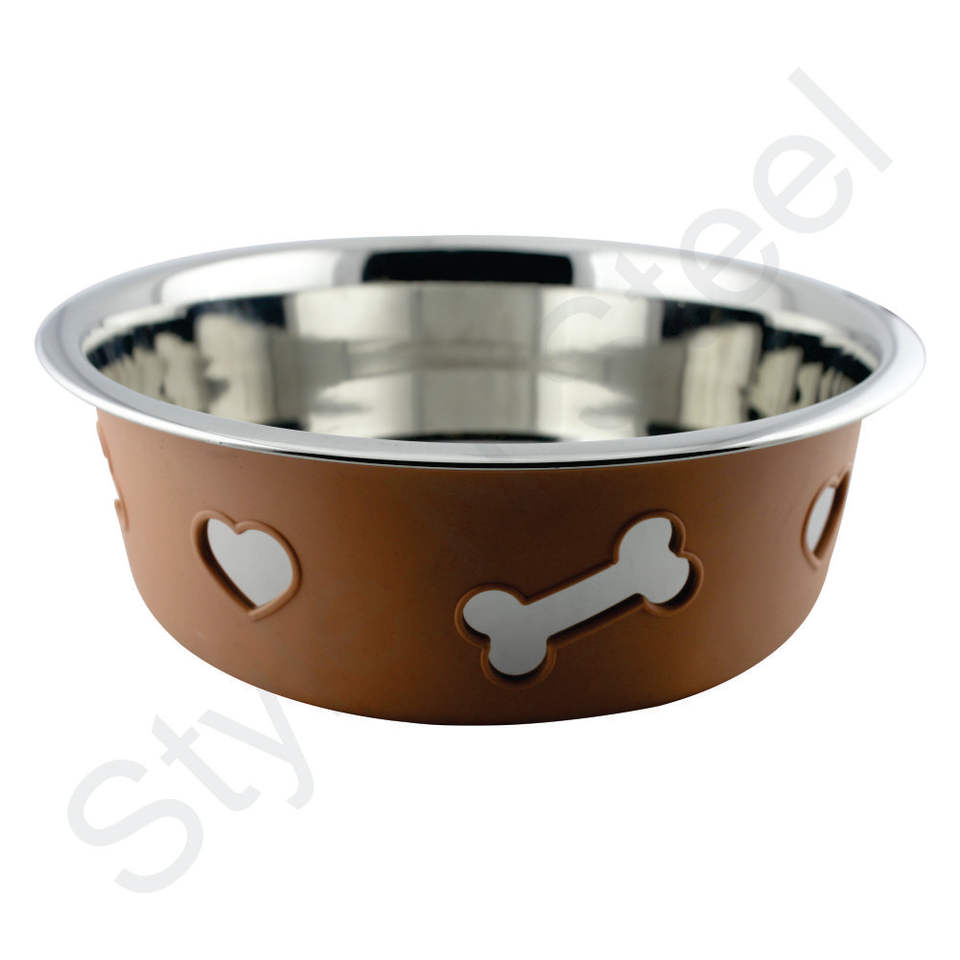 Stainless Steel Bone Design Outside Plastic Cover Dog Pet Bowls at Wholesale Price New Arrival Dog Bowl Brown Embrace Pet Bowl