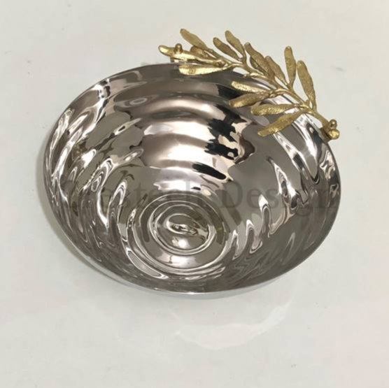 Stainless Steel Bowl Leaf Design Rim Mirror Polished Dinner Used Dessert And Rice Serving Bowl Lowest Price
