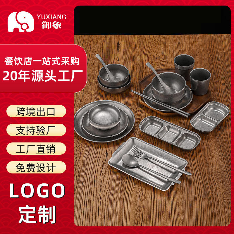 Stainless Steel Bowl Plate Set Rectangular Dish With Spoon Fork Chopsticks For Hotel Coffee Tea Service