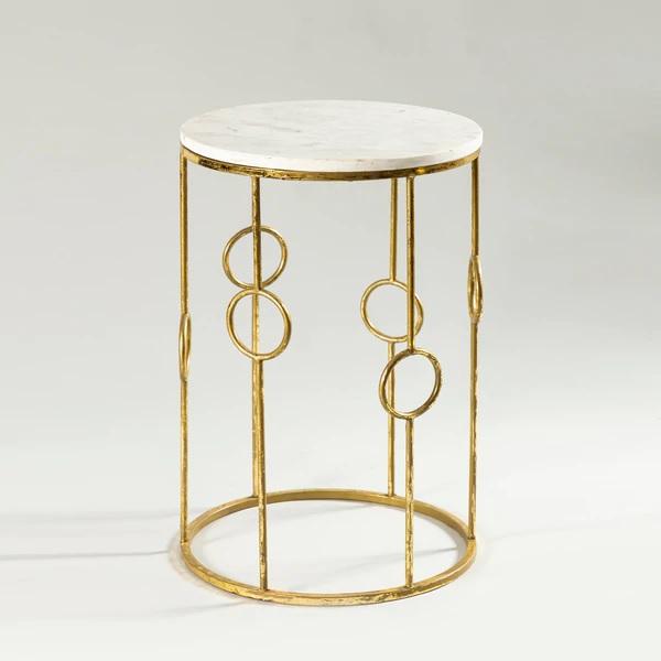 Stainless Steel Brass Antique Finish Coffee Side Table Metal Base Frame Marble Top Unique Round Design Customized for Homeware