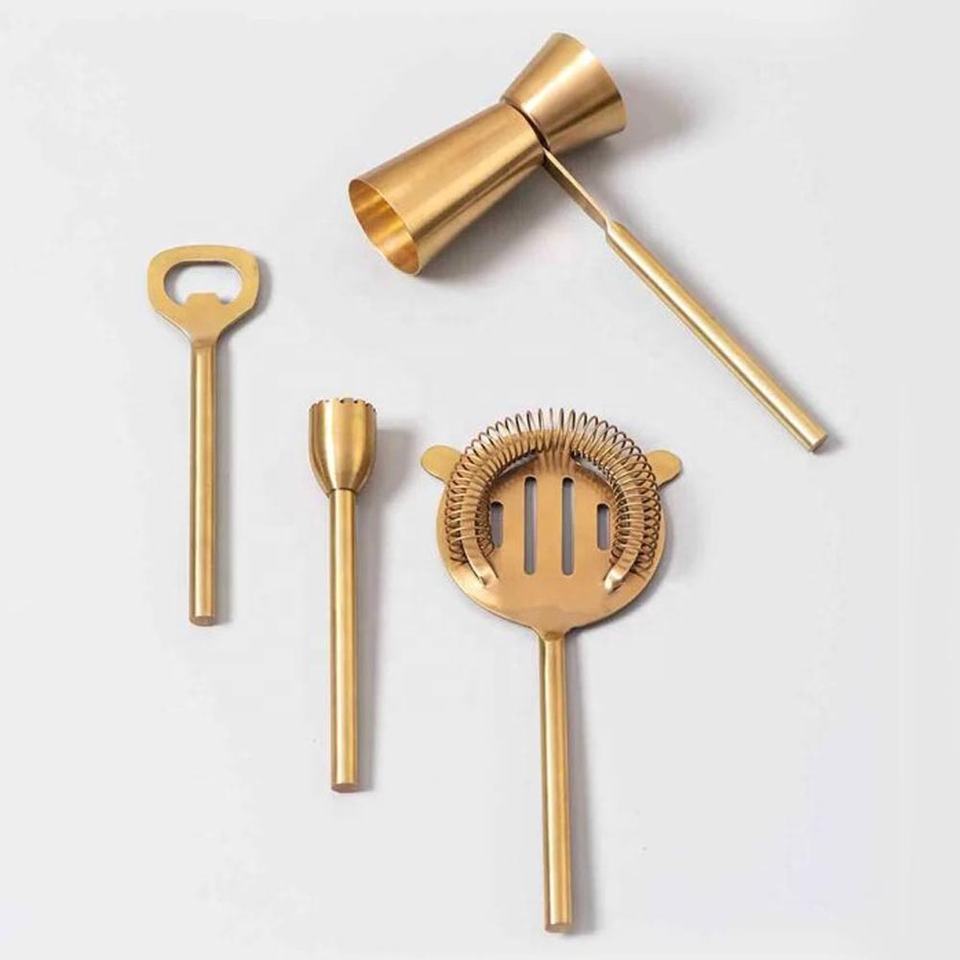 Stainless Steel Brass Complete Bar Tool Set With New Arrivals Bar Tools Cocktail Shaker Set Stand Table Top bar Set