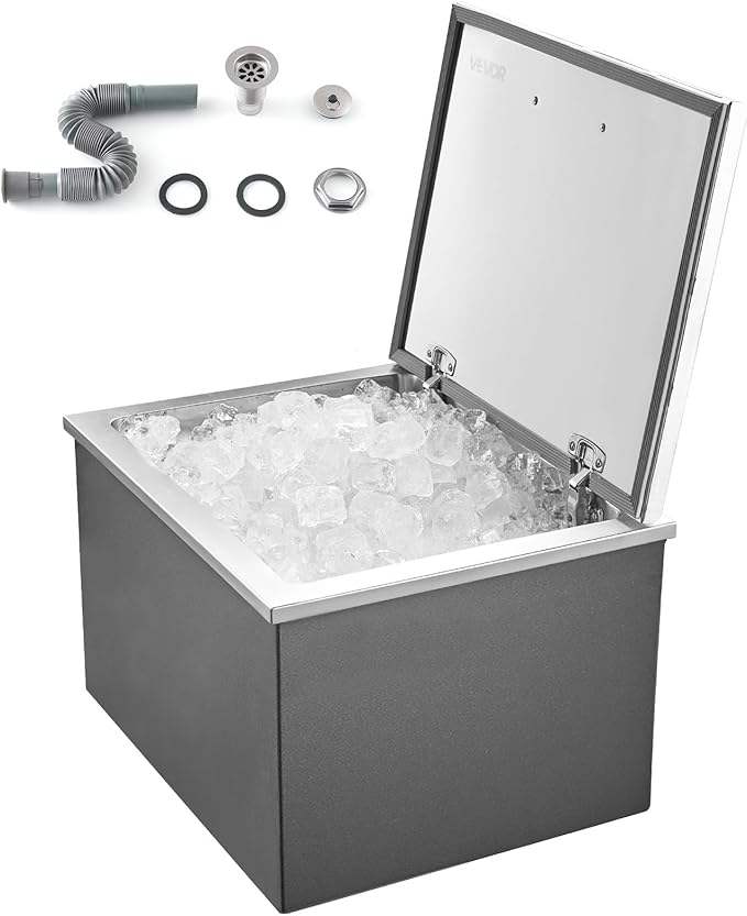 Stainless Steel Built-In Ice Bin Sliding Cover Cooler Box for Outdoor Parties and Weddings