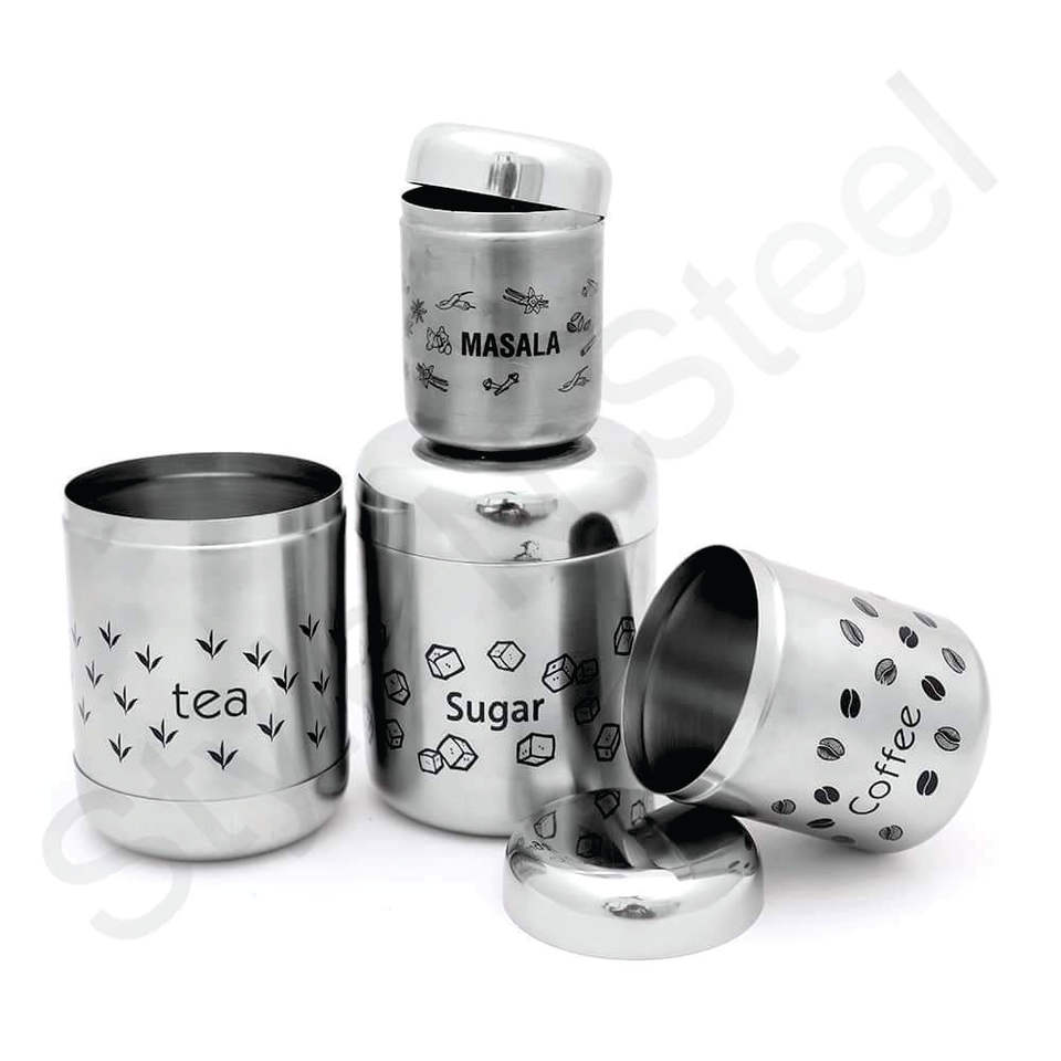 Stainless Steel Canister Set of 4 Pcs With Printing Design Storage Box Potatoes Onion and Garlic Canister Set Food Storage Box