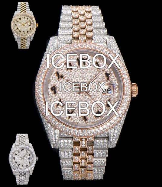 Stainless Steel Case Wrist Watch Glass Dial 10 Bar Water Resistant Stainless Steel Moissanite Fully Studded Moissanite Diamonds