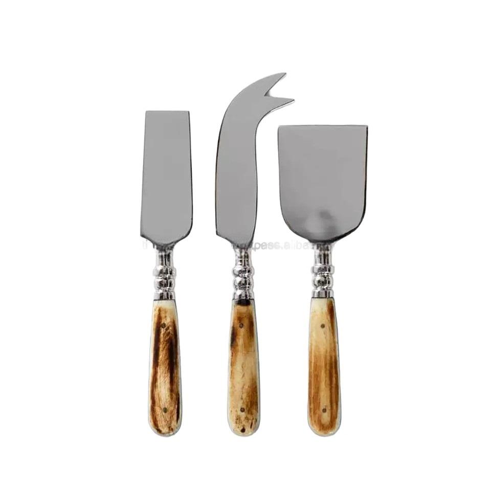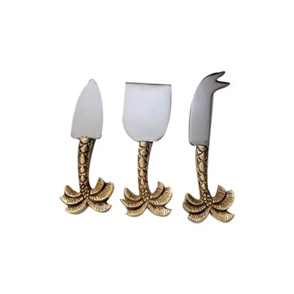 2025 New Arrival Antique Finished Silver Cheese Set Brown Design Silverware Palm Shape Brass Casted Handle Flatware Attractive