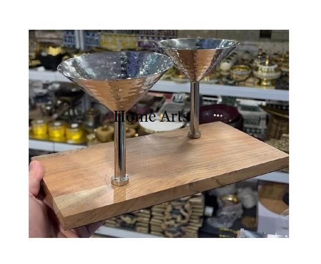 Stainless Steel Chocolates Bowl With Wooden Tray For Hotel And Restaurant Use Chocolates Dates Serving Bowl