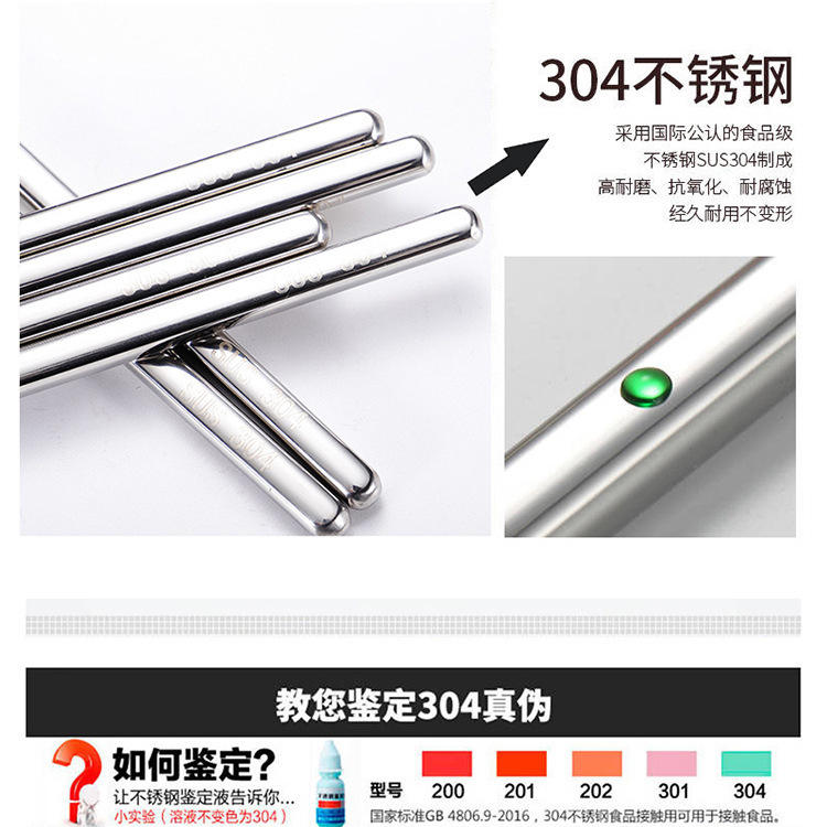 Stainless Steel Chopsticks 304 Round Top Hollow Metal Wedding Cutlery Adult Use Solid Color Design