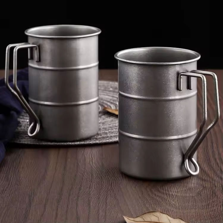 Stainless Steel Classic Barrel Beer Mugs with Handle for Camping Outdoor Use Portable & Thermal Insulation