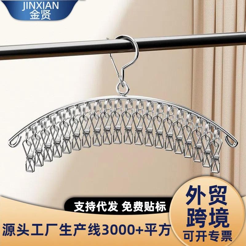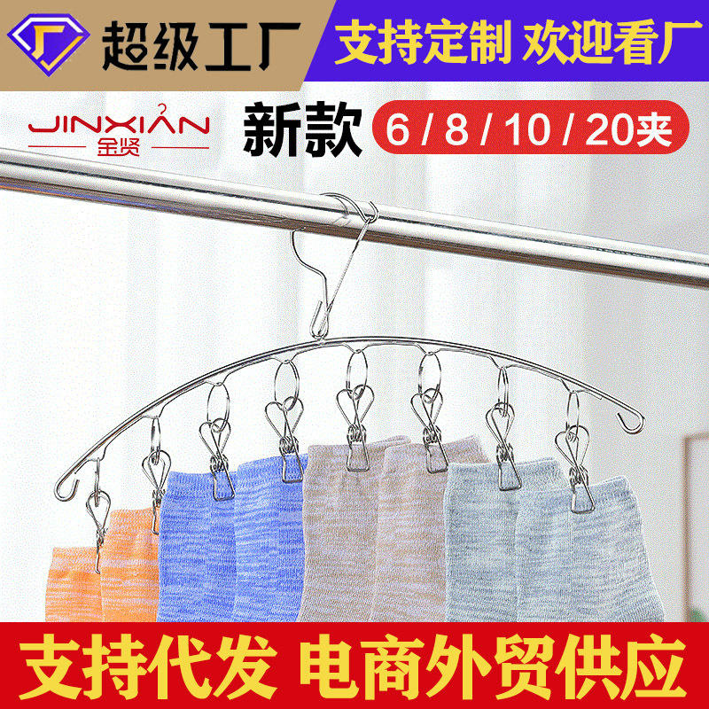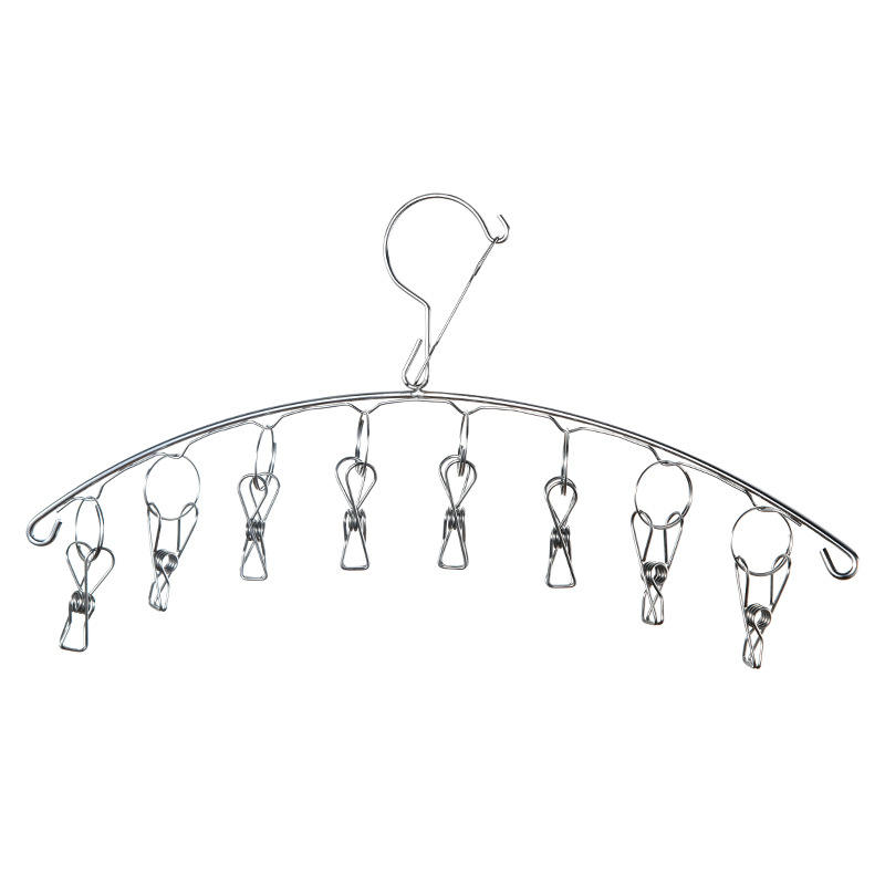 Stainless Steel Clothes Drying Rack With 8 Clips Curved Shape Hook Type For Socks And Small Clothing