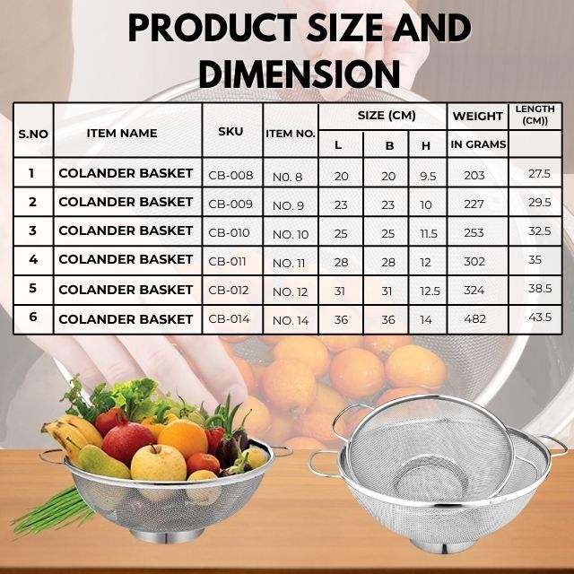 Stainless Steel Colander Strainer Heavy Duty Handles Dishwasher Safe Mesh Drainer Bowl for Pasta Noodles Grains Vegetables