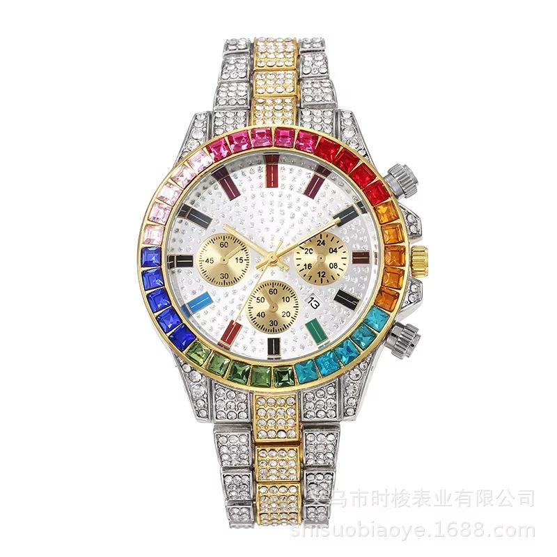 Stainless Steel Color Diamond Set Diamond Men's Watch Roman Scale Calendar Full Diamond Watch