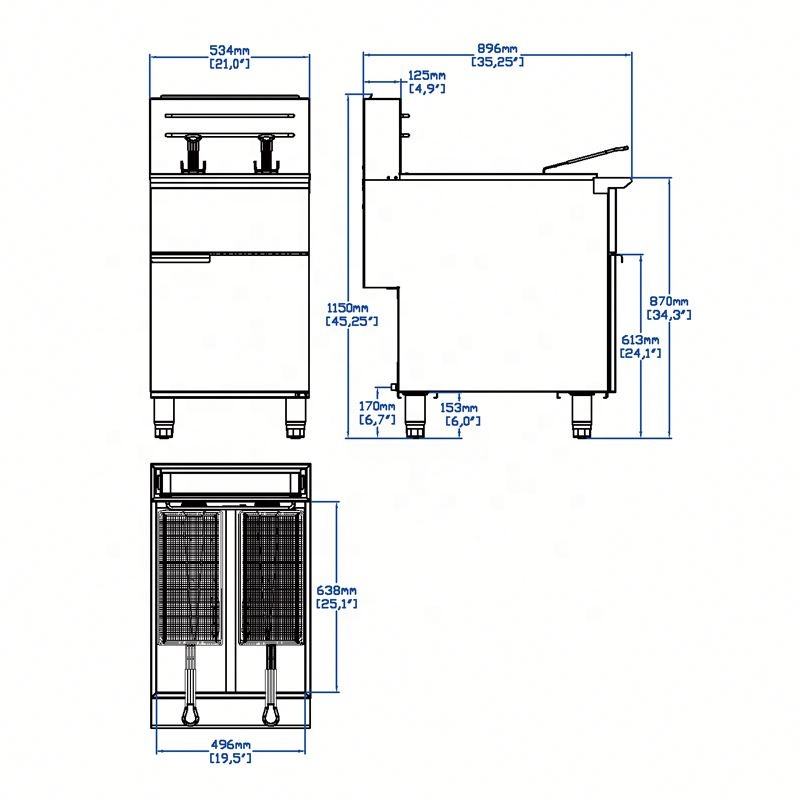 Stainless Steel Commercial Fryers Chips Frying Machine Kitchen Equipment Gas Floor Double Tank Fryer Gas Deep Fryer