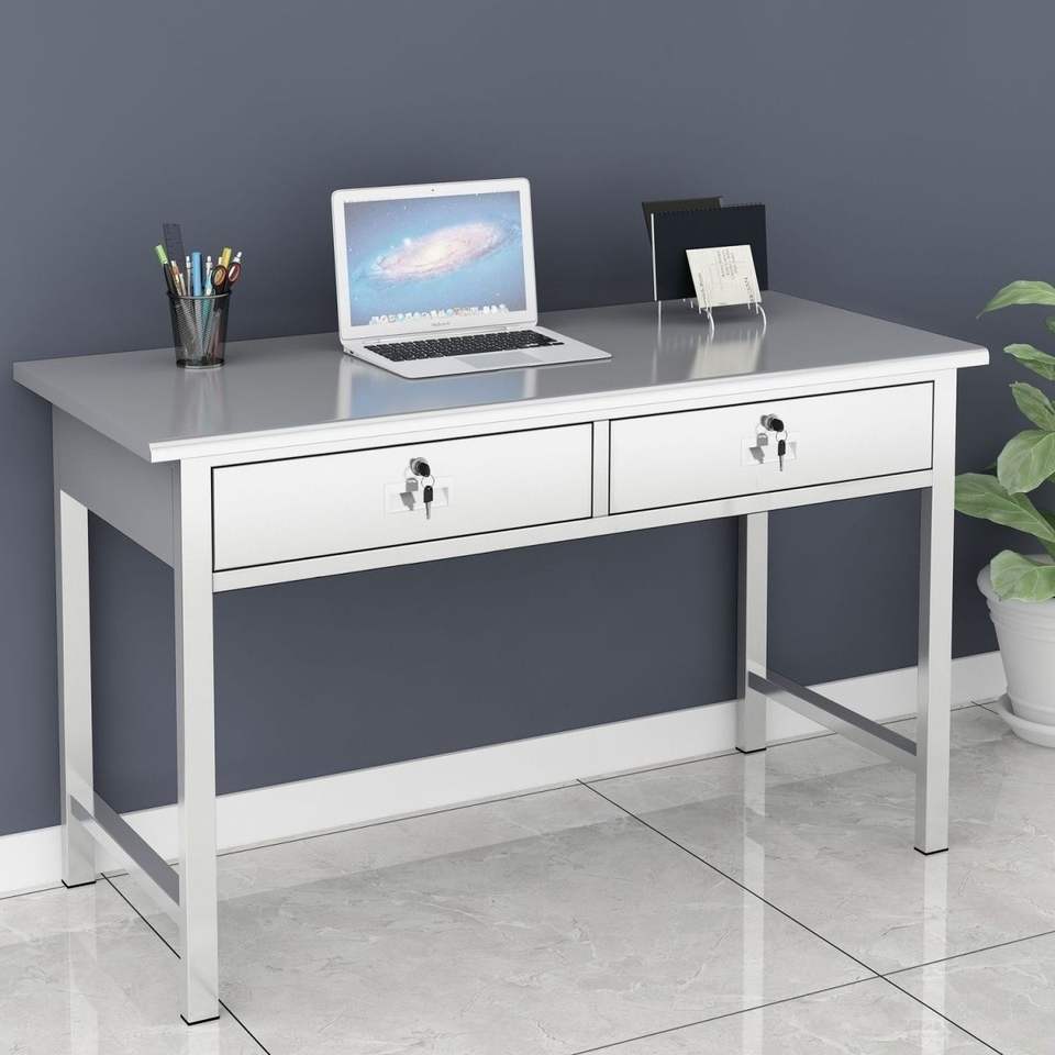Stainless Steel Computer Desk With Drawers Durable Workbench For Office Study Living Room