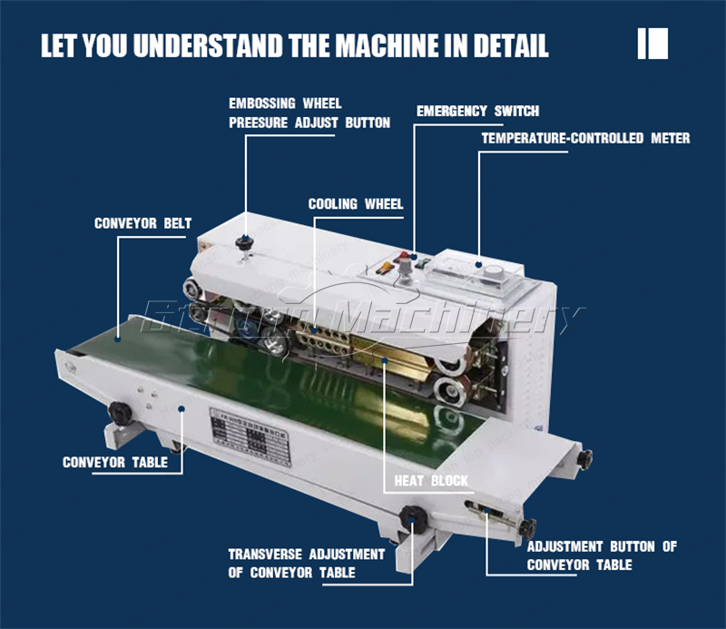 Stainless Steel Continue Band Sealer Plastic Film Bag Sealer Food Packaging Heat Sealing Machine with Counter