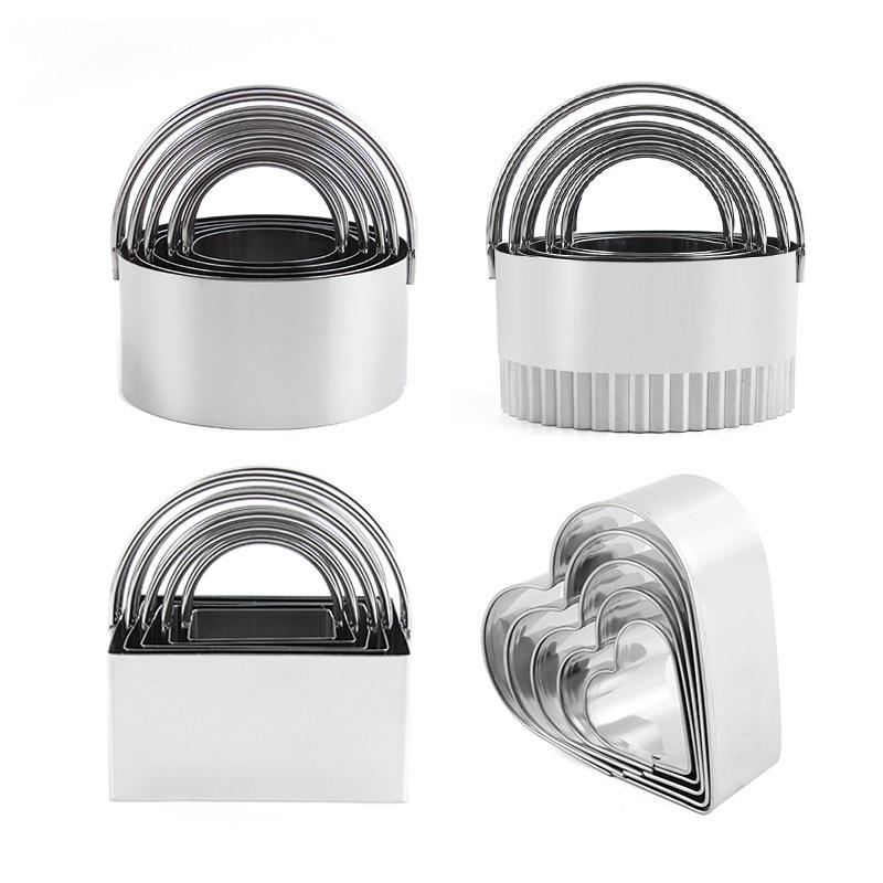 Stainless Steel Cookie Cutter Set 8Pcs Round Square Heart Mousse Mold Baking Tools Cake Mold Oven Safe