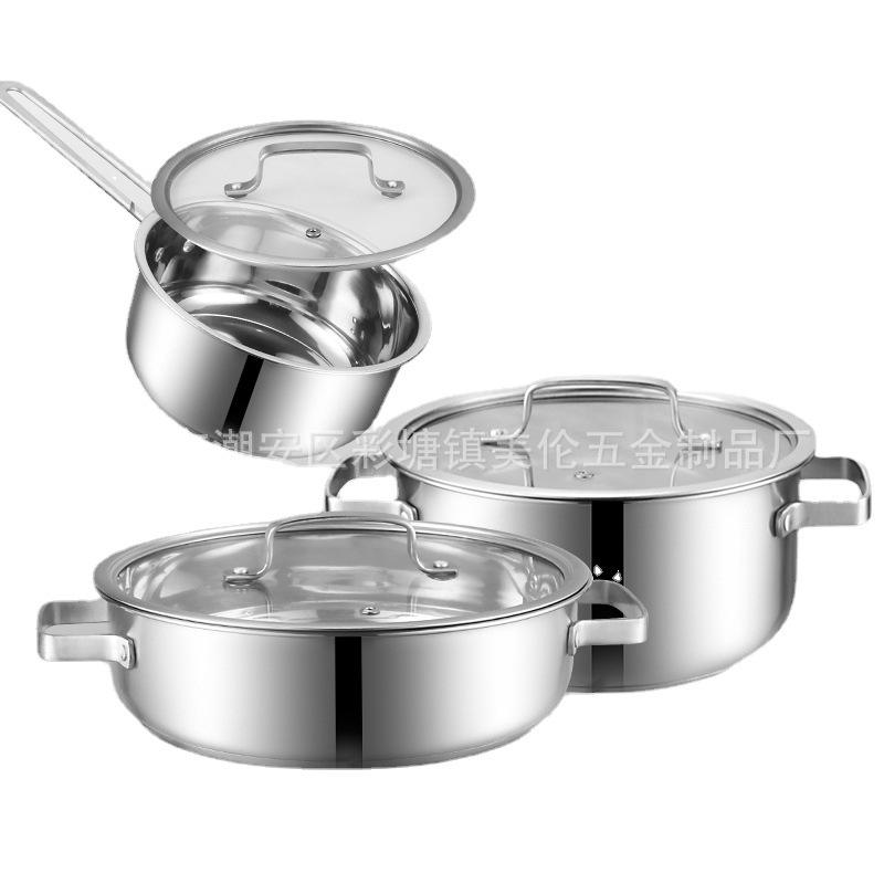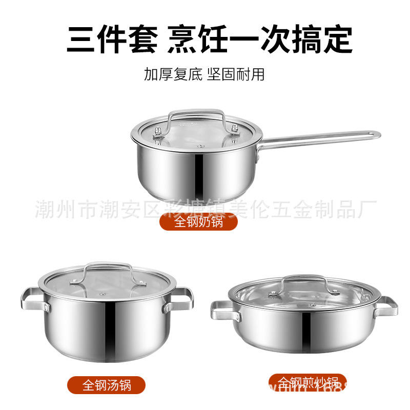 Stainless Steel Cookware Set 3 Piece Induction Compatible Multi Layer Bottom Gift Set Oven Safe Rust Proof