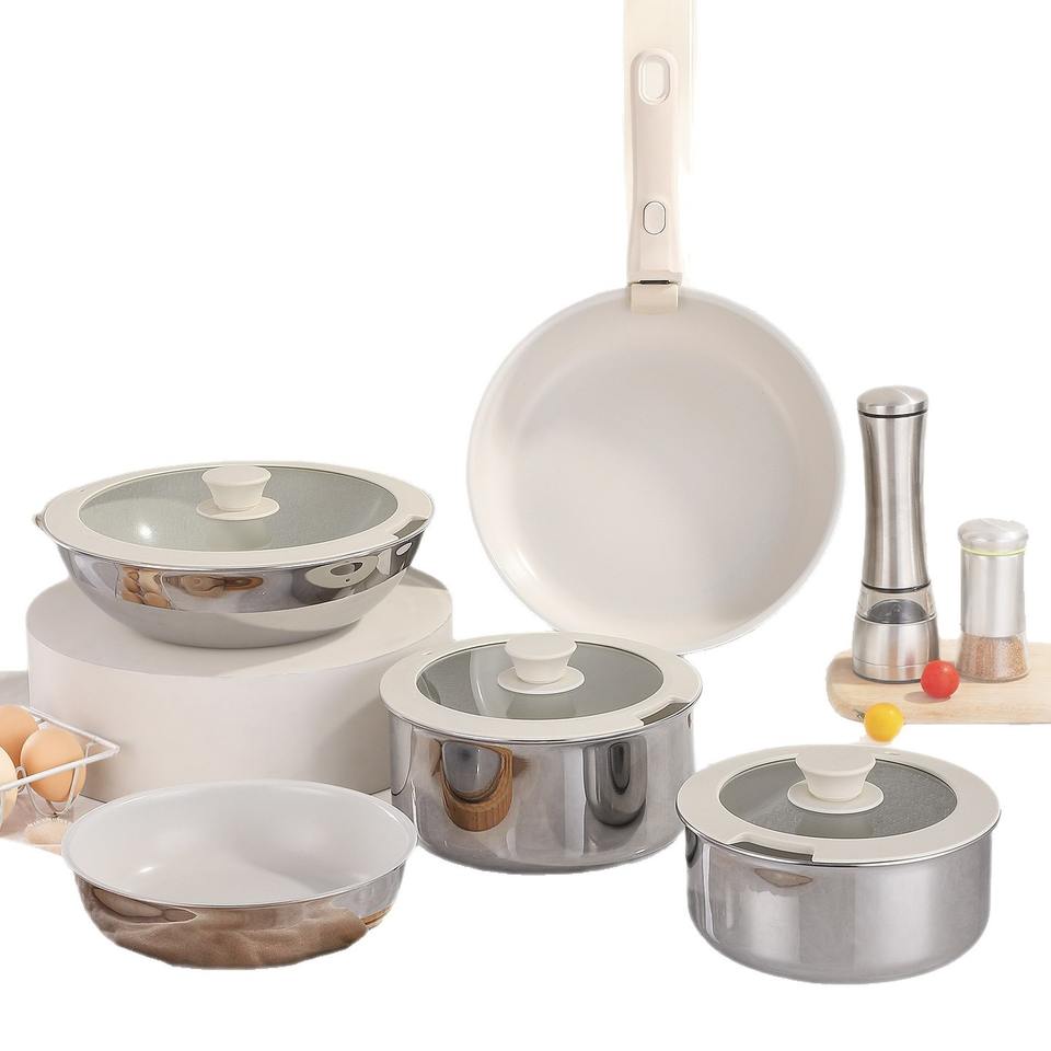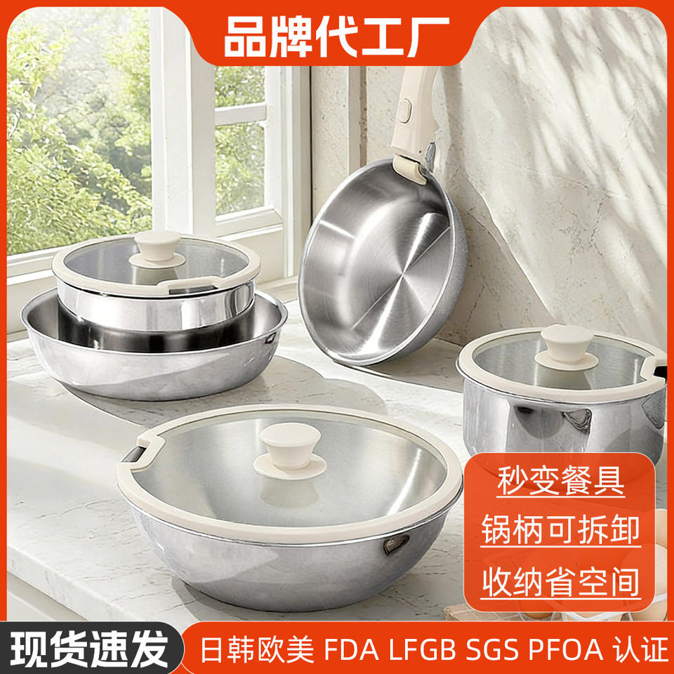 Stainless Steel Cookware Set 304 Non Stick Detachable Handle Oven Safe Universal Gas Stove Use