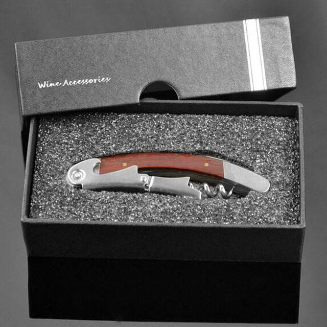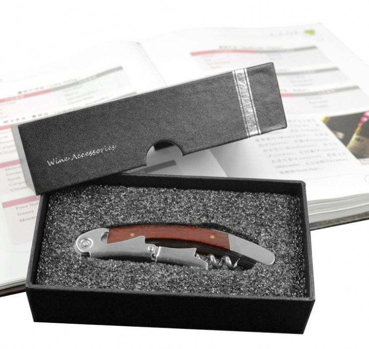 Stainless Steel Corkscrew With Wood Bottle Opener and Foil Cutter Waiter's Corkscrew