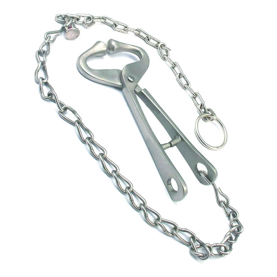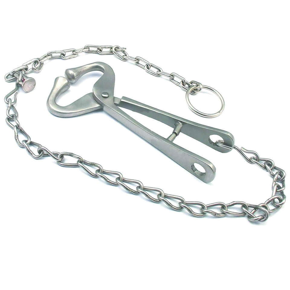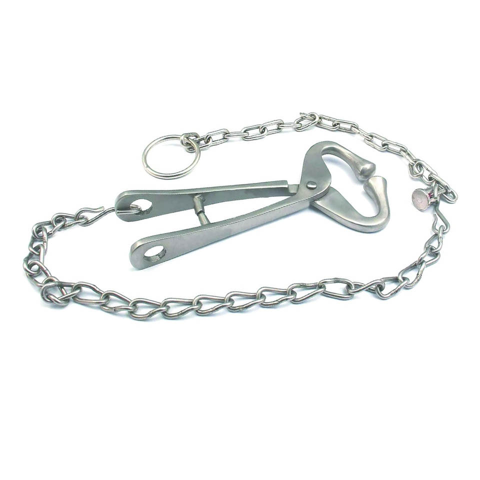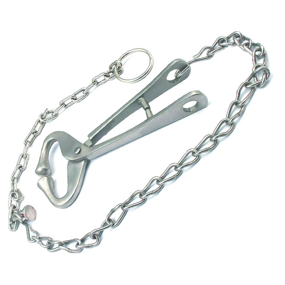 Stainless Steel Cow Nose Pliers with Chain Heavy Duty Cattle Bull Nose Lead Pulling Farm Ranch Livestock Handling Veterinary Use