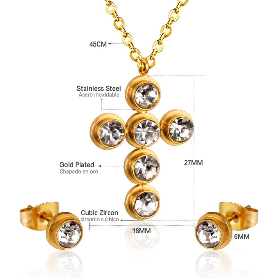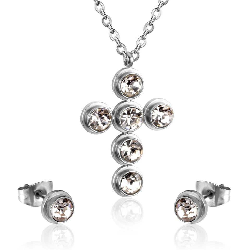 Stainless Steel Cross Jewelry Set Women Jewelry Set Rhinestone Necklace Jewelry Type