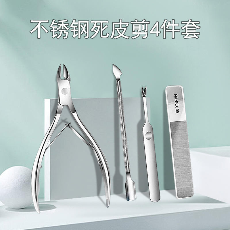 Stainless Steel Cuticle Scissors Set Dual Headed Remover Nail Pusher Manicure Tools