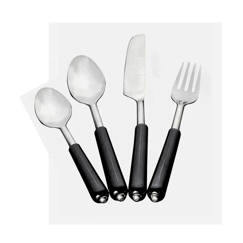 Stainless Steel Cutlery Flatware Set Spoon With Black Resin Handle Butter Knife Fork Dessert Cutlery Set