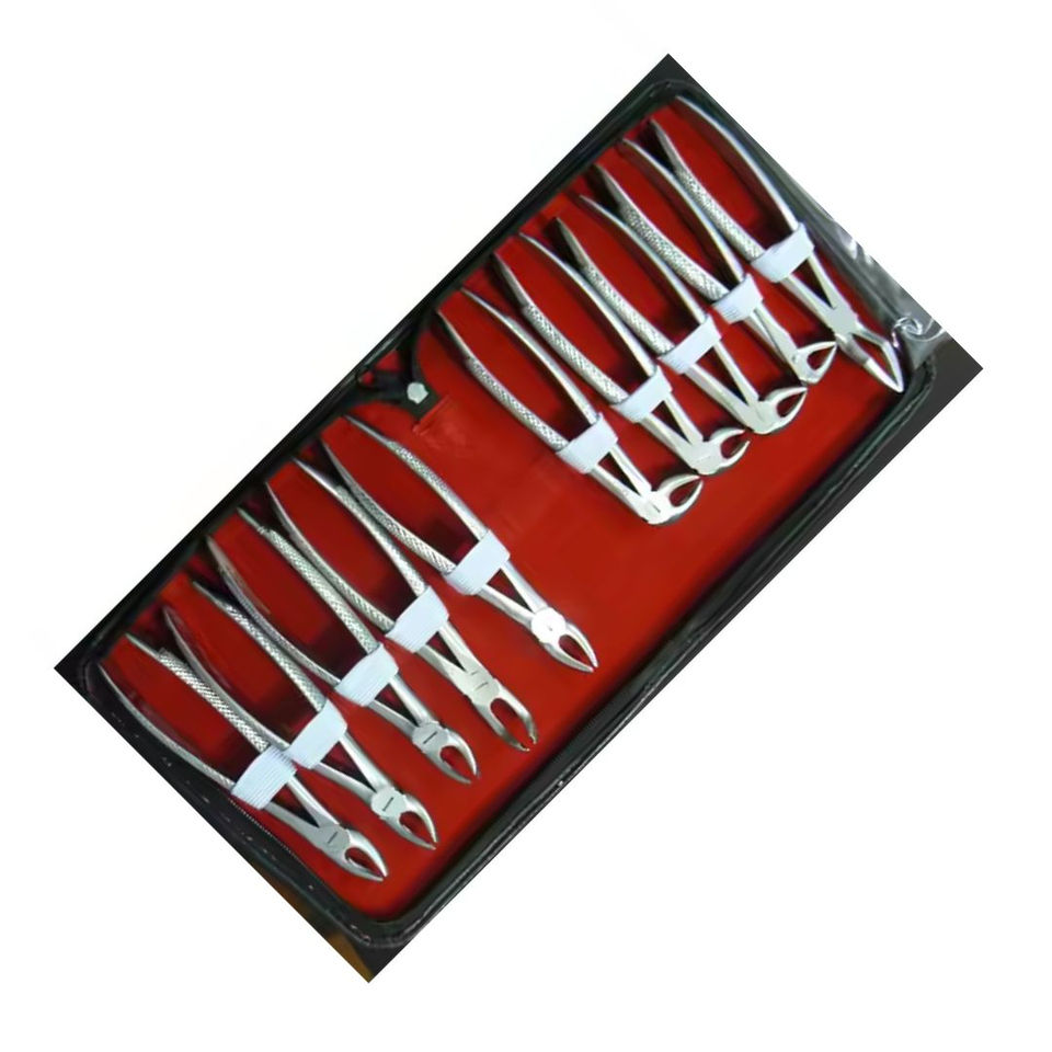High Quality Stainless Steel Dental Extracting Forceps Kit Manual Power Source Surgical Instrument Set Dental Basis
