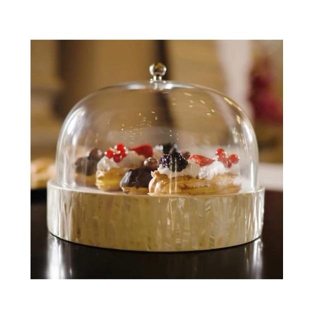 Stainless Steel Dessert Cake Server With Glass Dome Highest Quality Round Shape Snacks Dessert Server With Lid