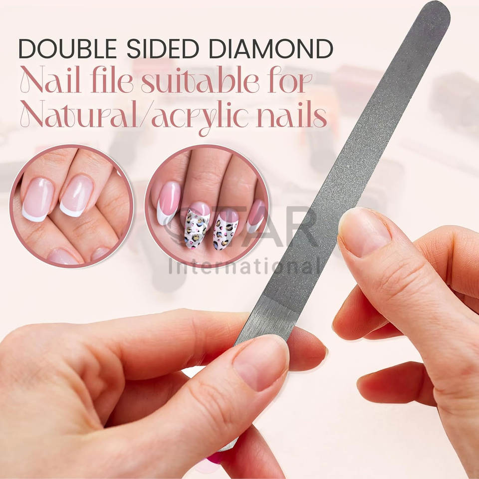 Stainless Steel Diamond Deb Nail File 7 Inch Double Sided Metal File Fingernails Toenails Fine Dust Coating Suitable Natural