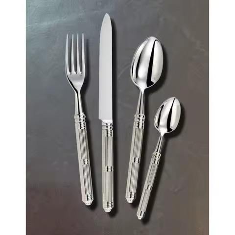 Stainless Steel Dinnerware Set Ribbed Handle Big and Small Spoon Fork & Knife Best Quality Flatware Set Shiny Polish